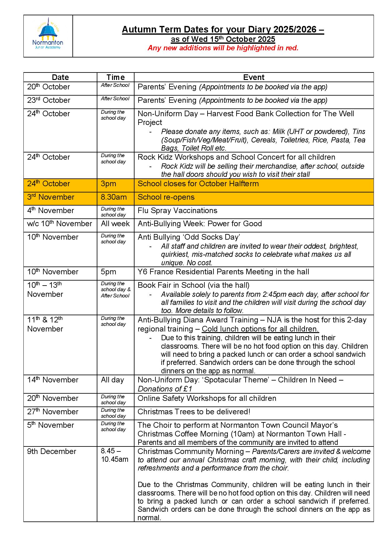 See below for our Diary Dates which we regularly update and re-share throughout the school year.